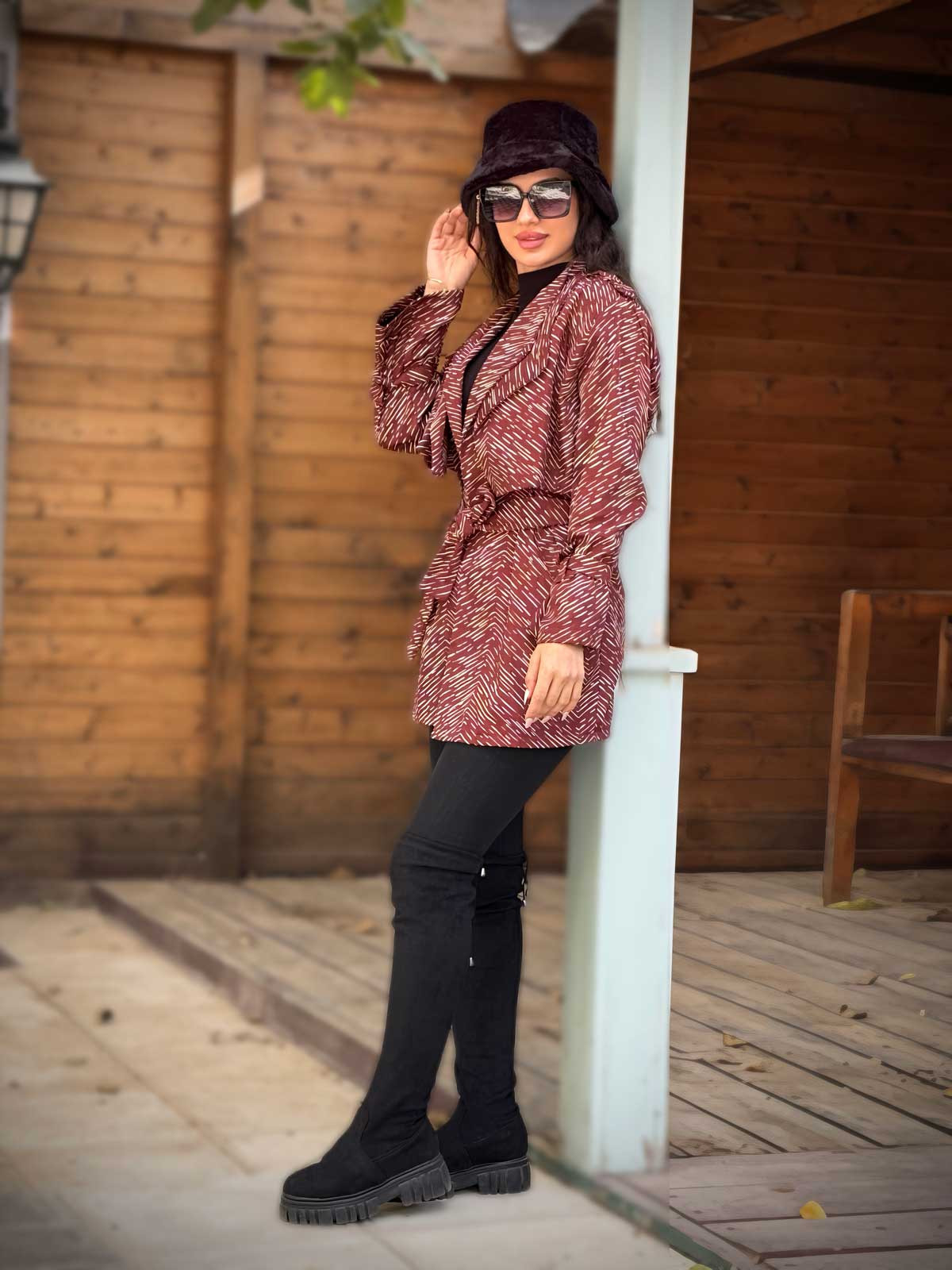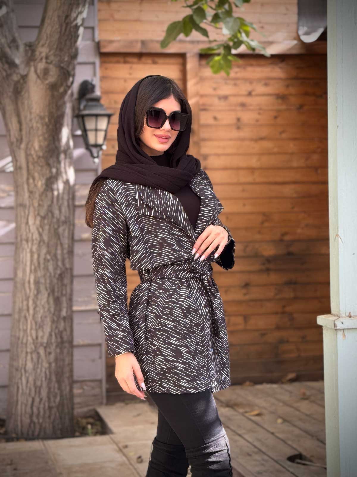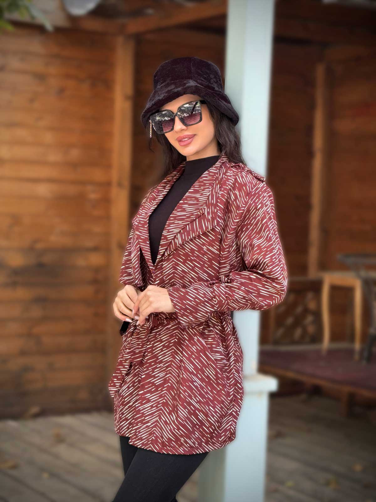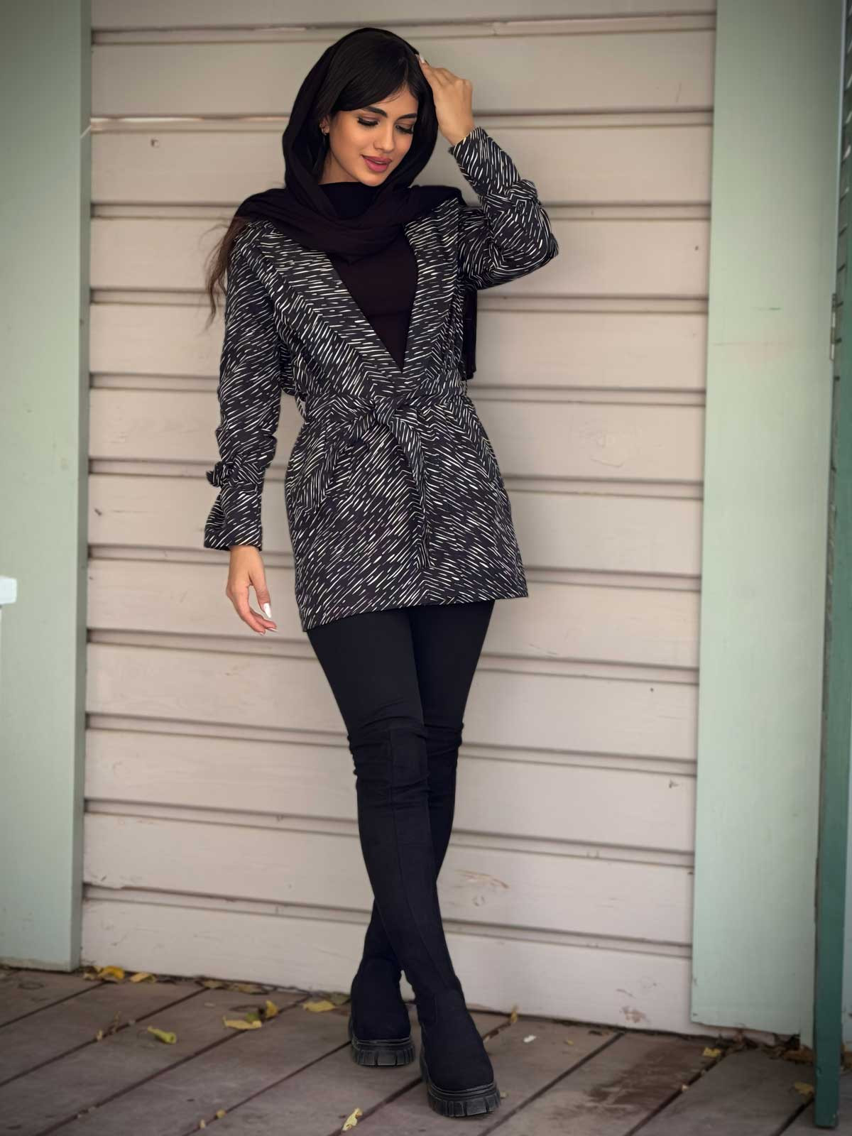 بارانی دو یقه سودا سانتانا طرح خطی